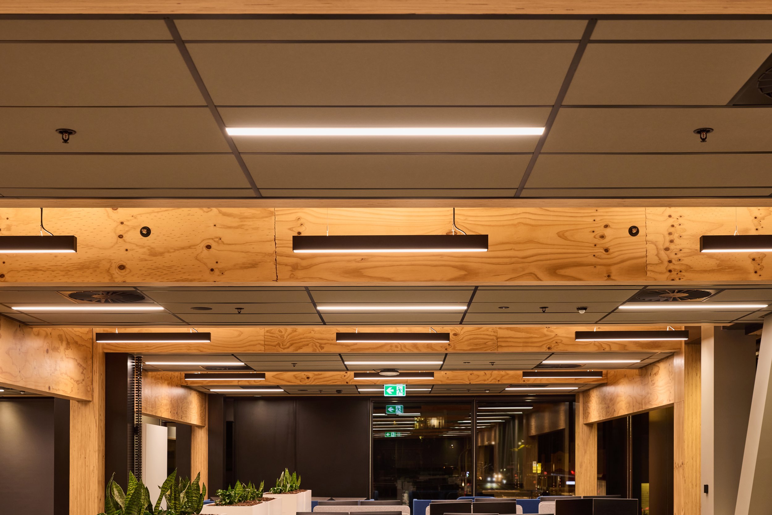 The project presented unique acoustic challenges due to the exposed CLT structure, requiring innovative solutions to meet high-performance standards while maintaining cost-efficiency and buildability. A raised acoustic floor is not common in New Zealand office fitouts and adds complexity when considering the staging of basebuild and fitout activities.